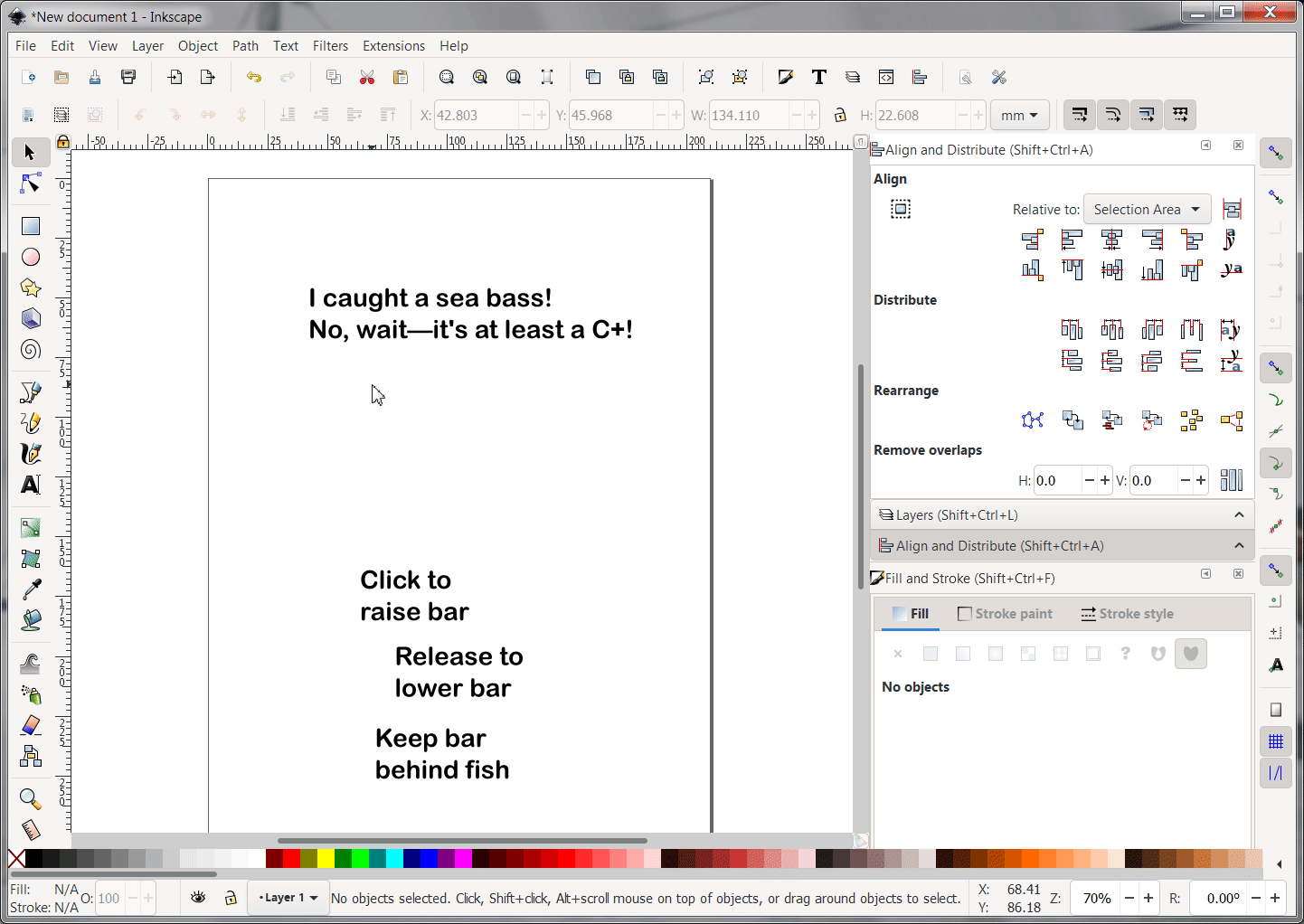 In this tutorial, I will be using Inkscape to create art assets for a game mechanic prototype that combines the fishing mini-game in Eric Barone’s Stardew Valley with aesthetics from Nintendo’s Animal Crossing: New Horizons. These assets will be imported into Scratch and staged as sprites so that they’ll be ready to have coding added. In this tutorial, you will also learn about the differences between vector graphics and raster graphics (also called “bitmap graphics” or “pixel graphics”) and how they are used in Scratch as well as how to use Inkscape to make vector-based art for use in Scratch.